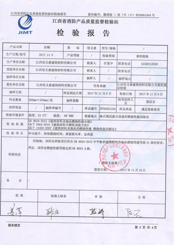 巖棉芯 檢測(cè)報(bào)告